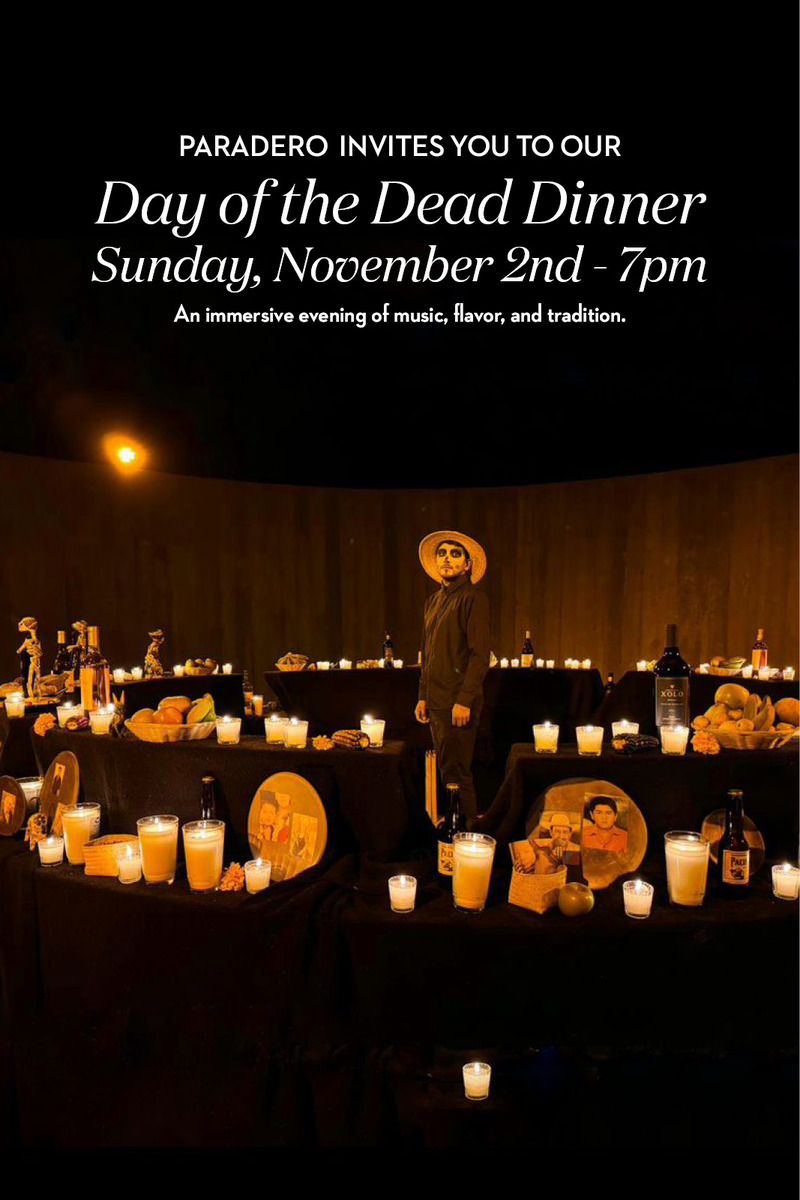 The evening begins with a walk through our Altar de Muertos, followed by live music under the moonlight, and a special menu thoughtfully created for the occasion, paired with curated beverages that celebrate the flavors and spirit of the night.